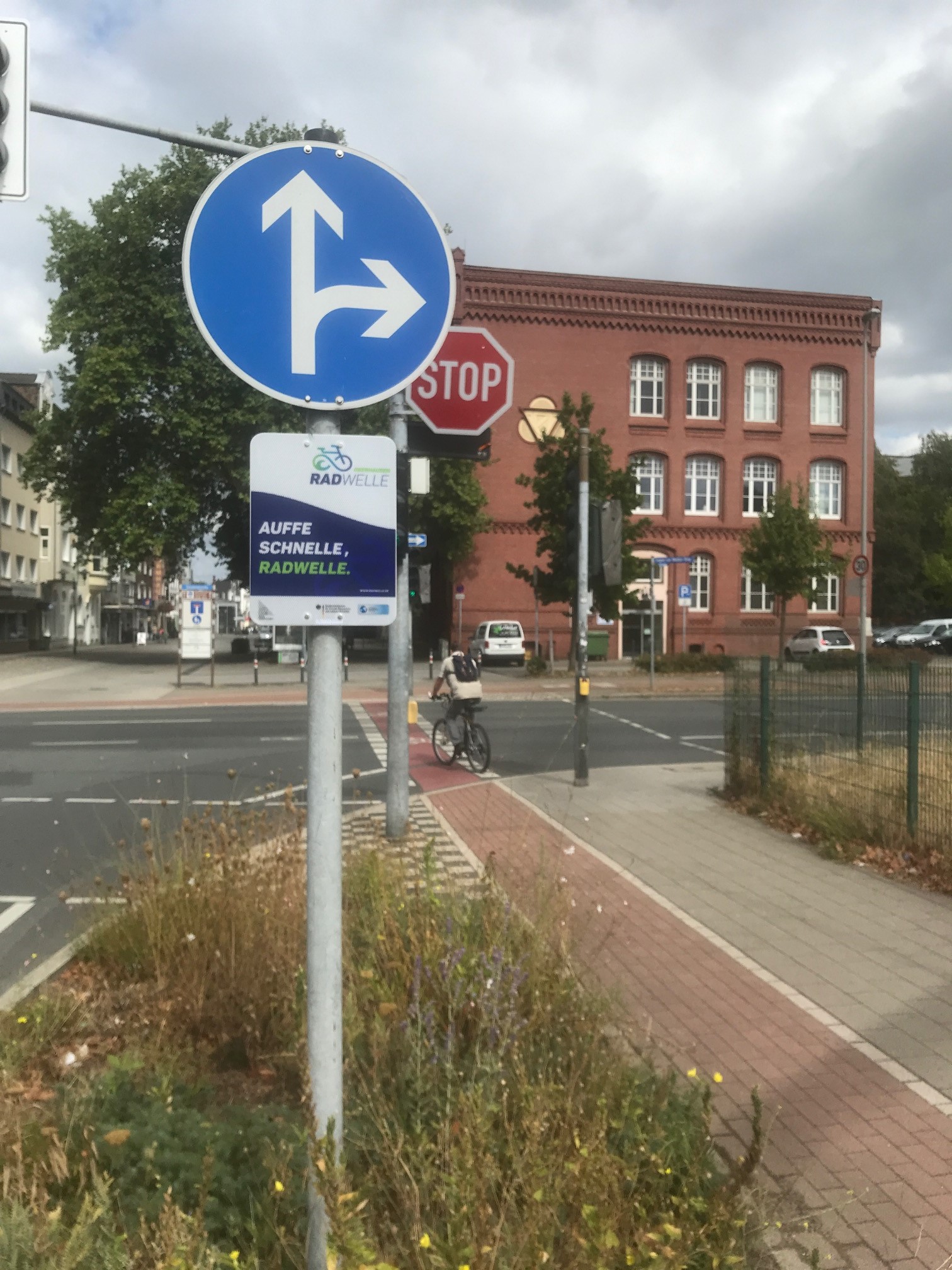 Zur Förderung des Radverkehrs hat die Stadt Oberhausen mit dem Projekt RadWelle am Bundeswettbewerb Klimaschutz im Radverkehr des Bundesministerium für Umwelt, Naturschutz, Bau und Reaktorsicherheit erfolgreich teilgenommen und für die Umsetzung der Maßnahme eine 90% Förderung erhalten. Die RadWelle dient zur Reduzierung der Wartezeiten für Radfahrer an Kreuzungen mit Ampeln. Der Radfahrer wird hierzu beim Anfahren auf die Ampel frühzeitig erkannt und ein entsprechendes Programm zur schnellen Grünschaltung initialisiert. Hierdurch kann die Wartezeit an der Ampel erheblich reduziert und der Komfort für den Radfahrer gesteigert werden, da eine frühzeitige Erkennung des Radfahrers möglich ist und kein Taster an der Ampel mehr betätigt werden muss. Im besten Fall kann der Radfahrer die Ampel beim Eintreffen sogar ohne Wartezeit sofort passieren.